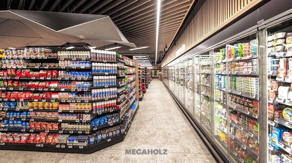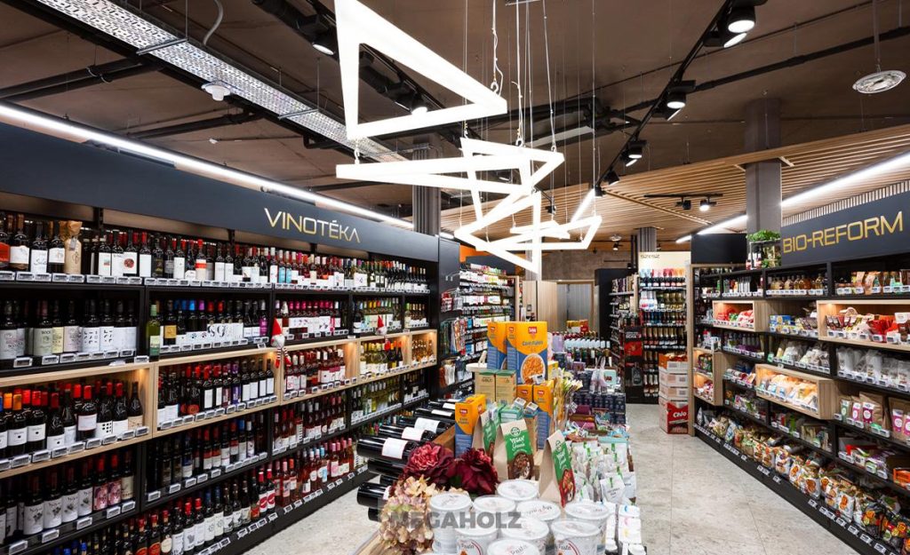 A CBA Linum üzletben egyedileg gyártott üzletberendezési megoldásainkkal járultunk hozzá a színvonalas megjelenéshez. A falburkolatokon, optikai álmennyezeteken, kasszapultokon, design feliratokon