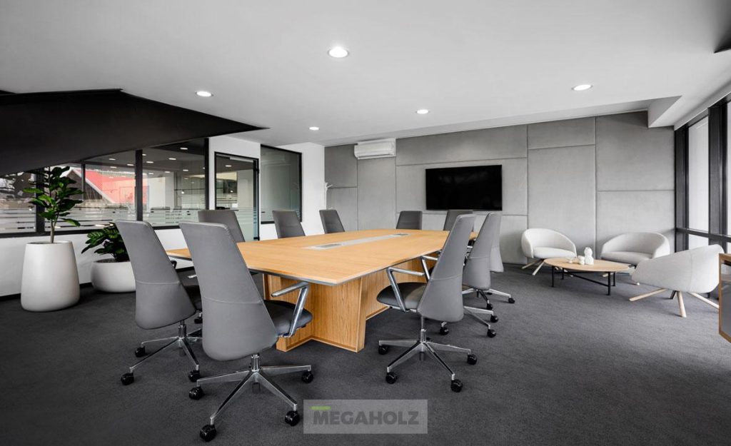 Legújabb projektünkben mi gondoskodtunk az irodák, a konyha és a tárgyalóterem bútorzatáról is, beleértve az egyedi és mobíl bútorokat a