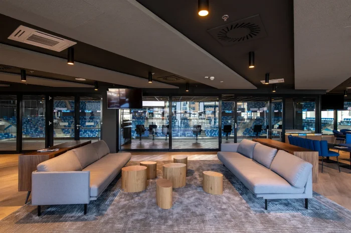 A kényelem és a design mellett az is fontos szempont volt, hogy mindkét cég arculatának színvilága visszaköszönjön a bútorok megjelenésén.
