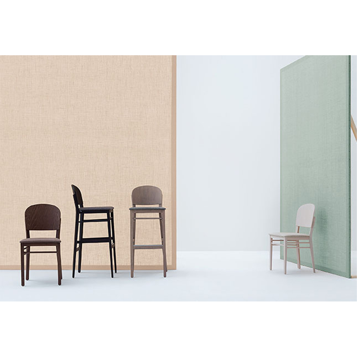 Egyszerű vonalak a különleges design érdekében. A szék és a bárszék tömör bükkfa. A bükkfa ülés és háttámla elérhető pácolt, lakkozott változatban. Elérhető kárpitozott üléssel is.