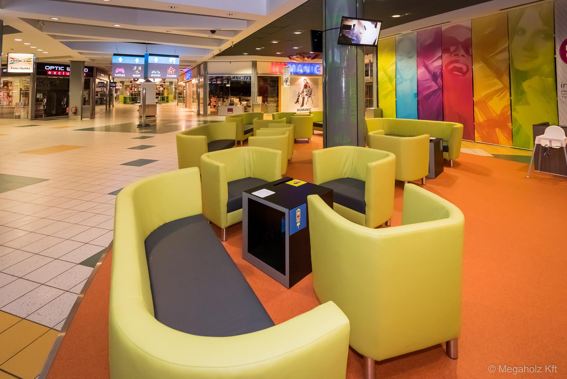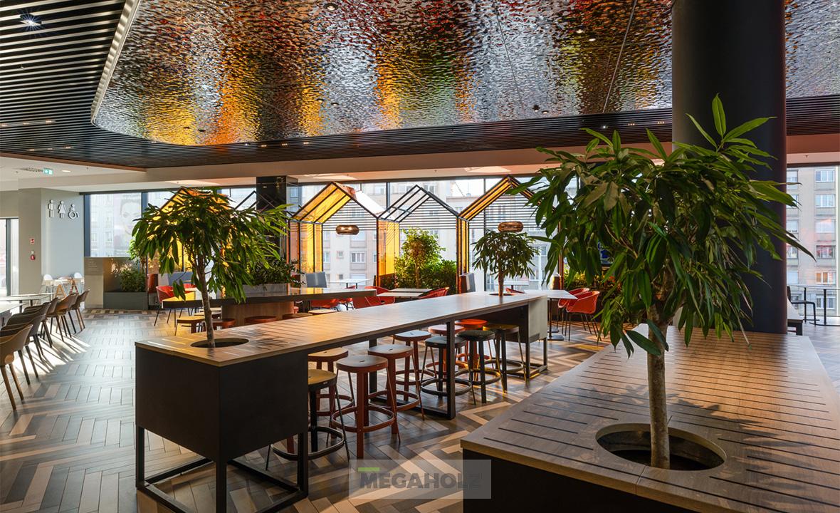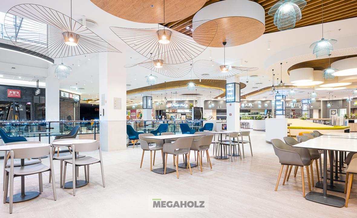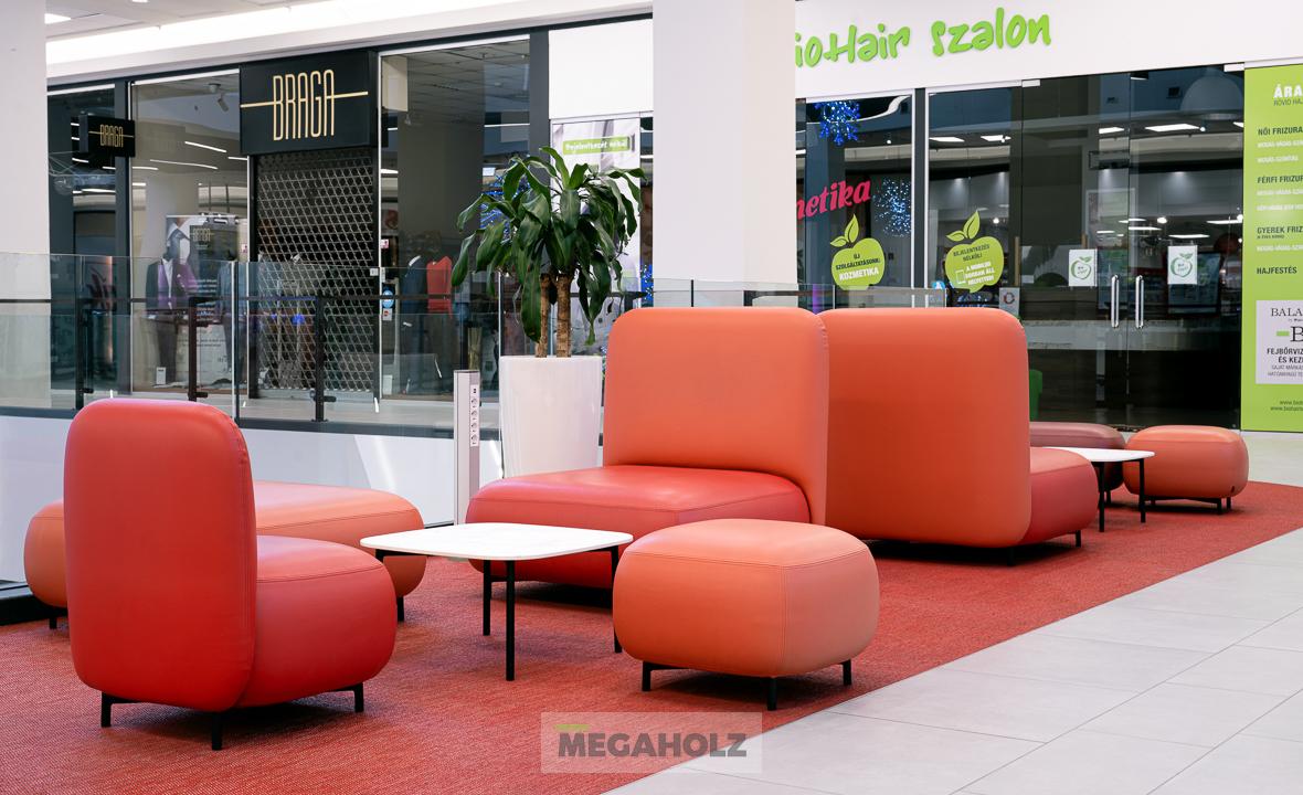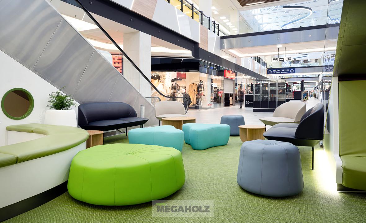 Az Allee étteremudvarának felújításában a Megaholz csapata is részt vett. Az udvar stílusos külsőt kapott, nem beszélve a különböző design elemekről. A Megaholz szállította az egyedileg gyártott kárpitozott leülőket, etetőpultokat valamint a különleges narancssárga plexi és fém ülőkuckókat.