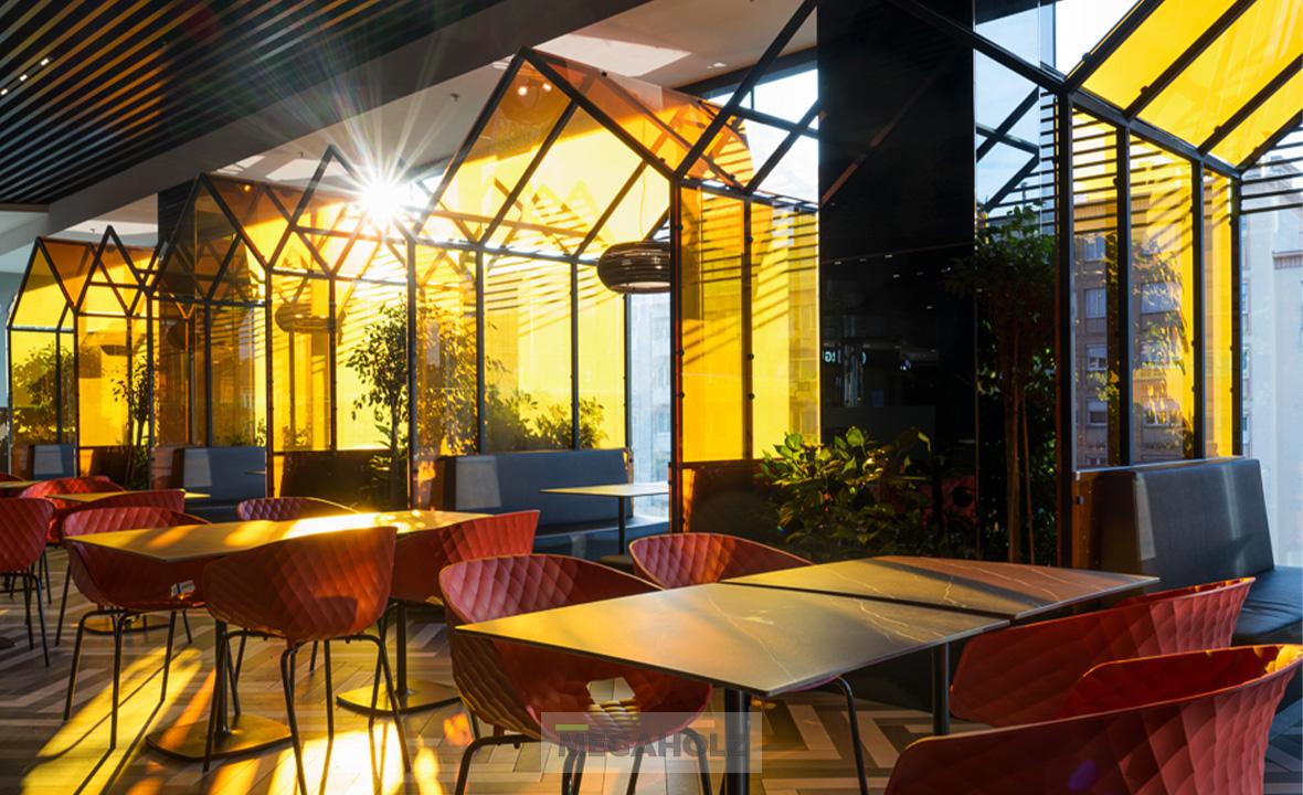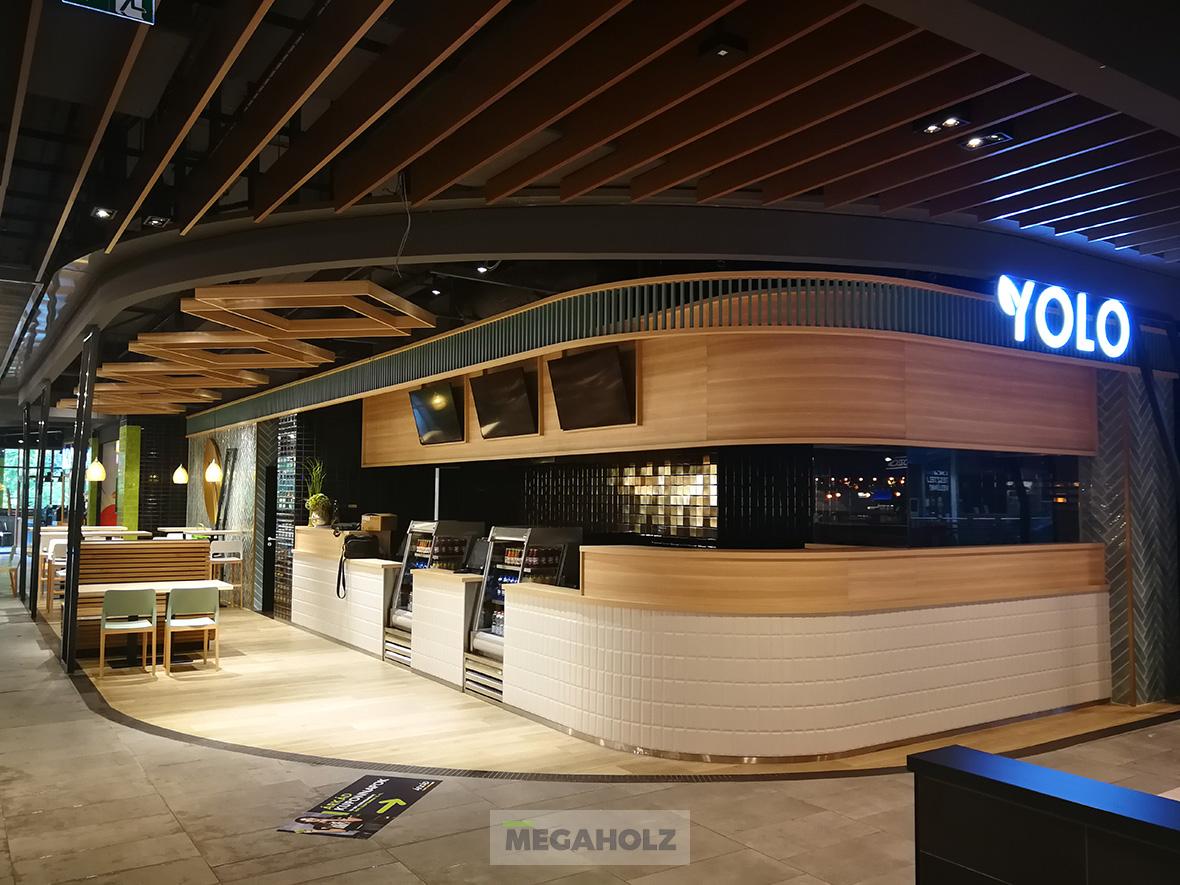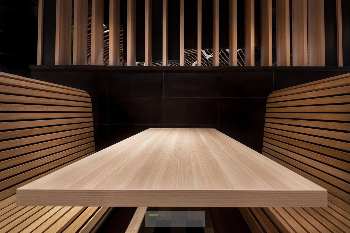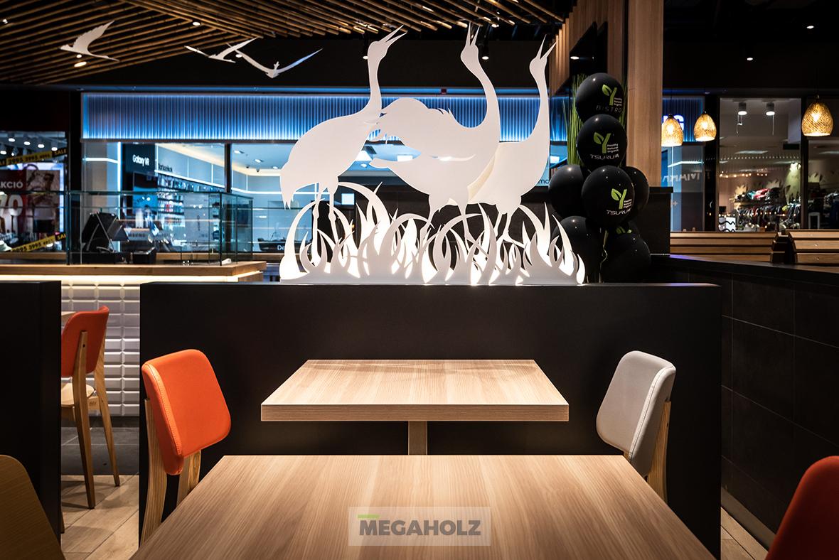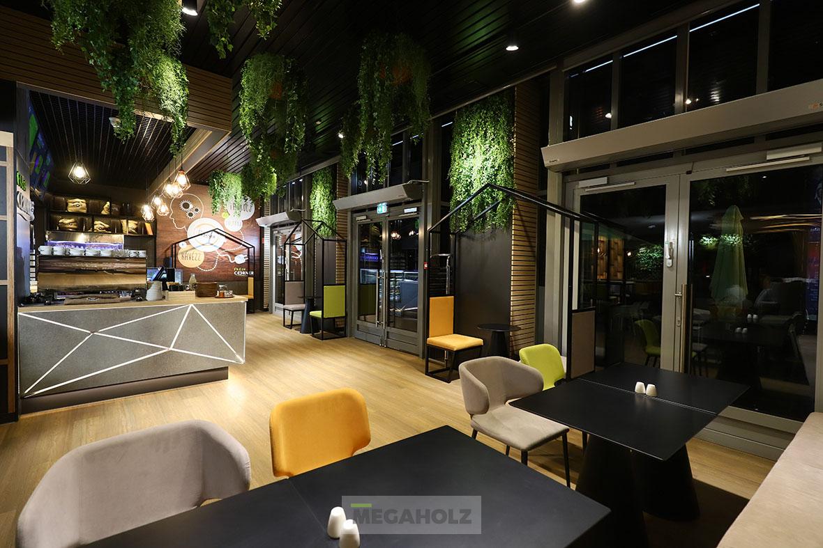 Az Allee étteremudvarának felújításában a Megaholz csapata is részt vett. Az udvar stílusos külsőt kapott, nem beszélve a különböző design elemekről. A Megaholz szállította az egyedileg gyártott kárpitozott leülőket, etetőpultokat valamint a különleges narancssárga plexi és fém ülőkuckókat.