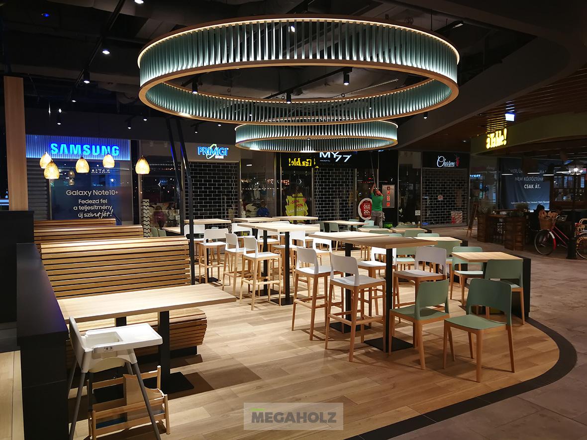 A budapesti ÁRKÁD bevásárlóközpontban újonnan nyílt meg a Food Loft, 7 új étteremmel, amelyek közül kettőt teljes egészében Mi bútoroztunk.