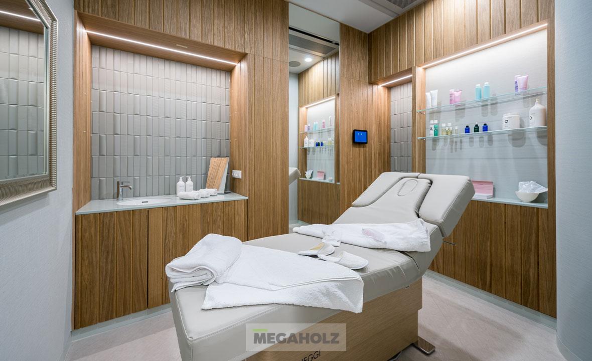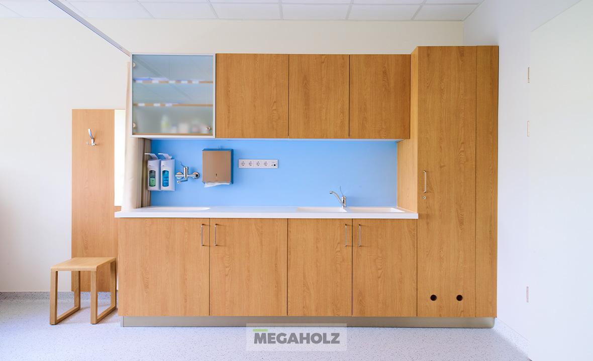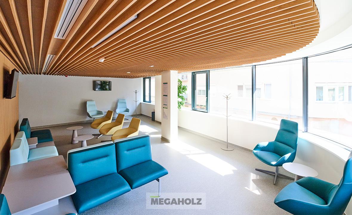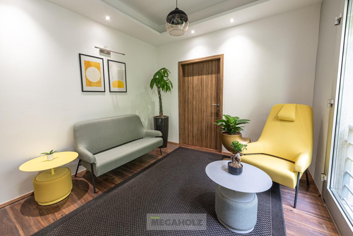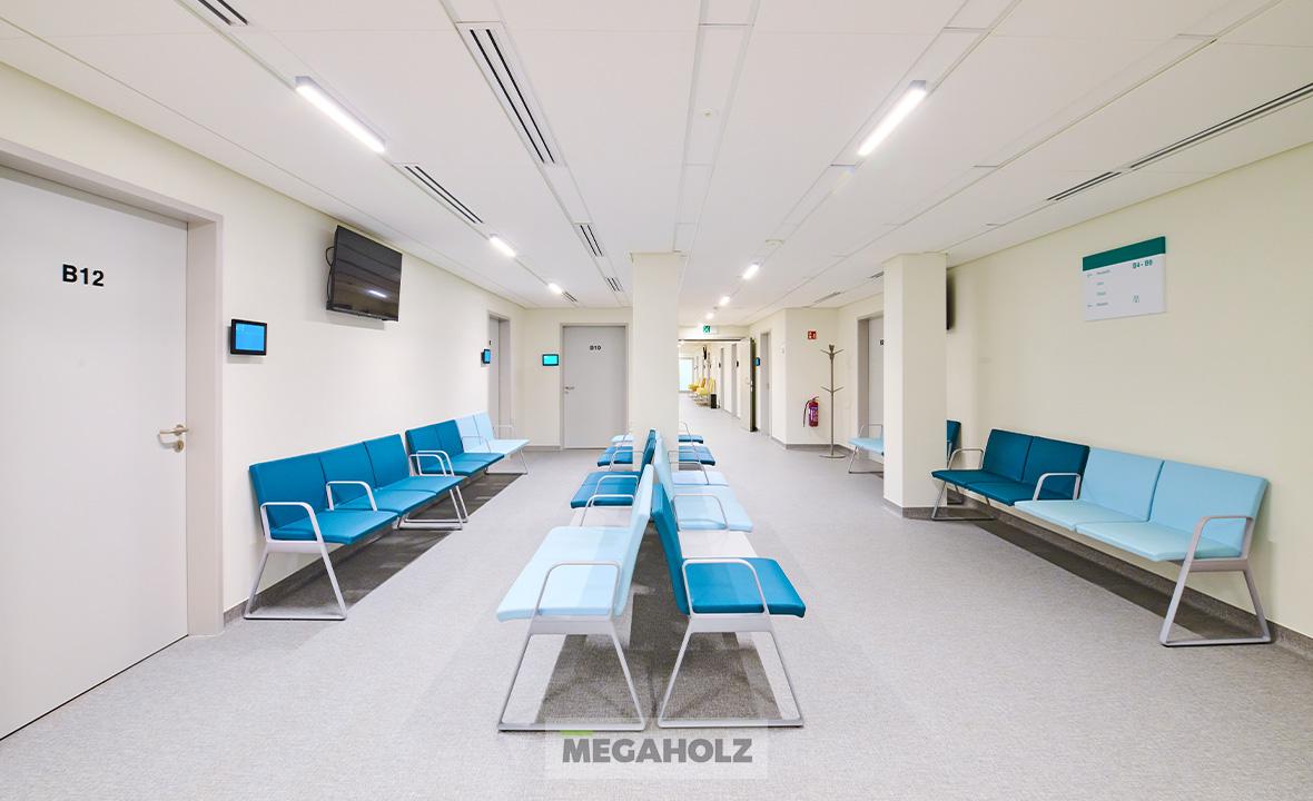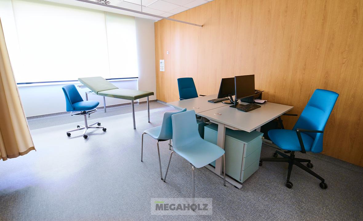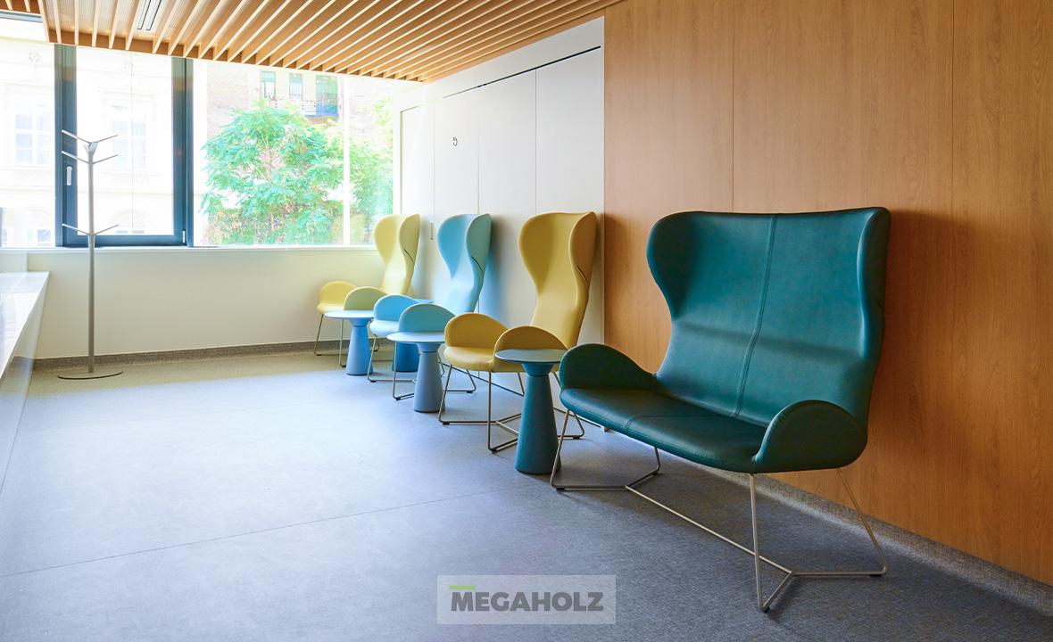 Az egészségközpont belső tereinek kialakításában a Megaholz csapata is részt vett, kiemelt figyelmet fordítva a páciensek és irodisták kényelmére és igényeire. Minden kárpitozott bútor egyedi, antibakteriális szövettel készült el, így nemcsak a kényelmi elvárásoknak, hanem a legszigorúbb higiéniai követelményeknek is megfelelnek.