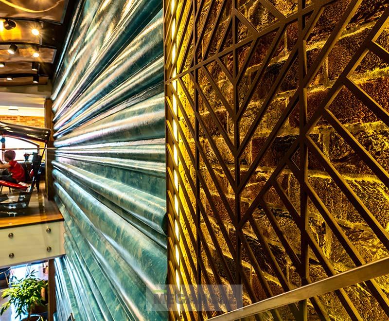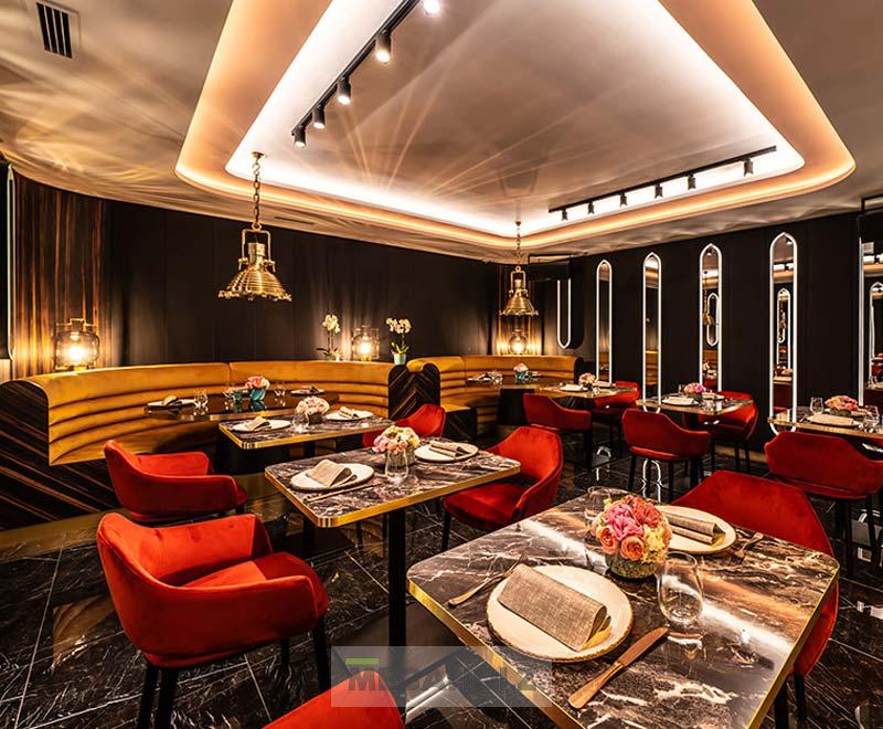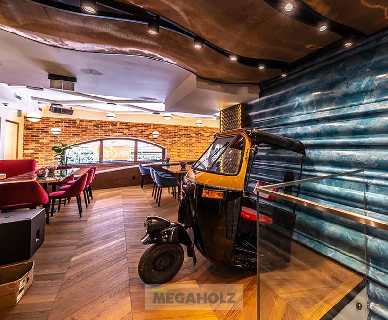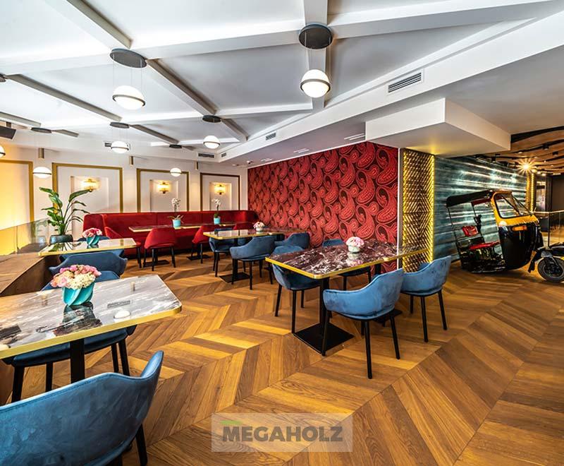 A Bombay Budapest belvárosában található exkluzív indiai étterem. A teljes egyedi bútorzat kialakításáért leányvállalatunkkal, a Mobilia Articával közösen feleltünk. Így mi biztosítottuk az LED-del megvilágított falburkolatokat, optikai álmennyezeteket, az egyedi kárpitozott leülőket, a teljes bár és ehhez tartozó design hátfal elemeket.