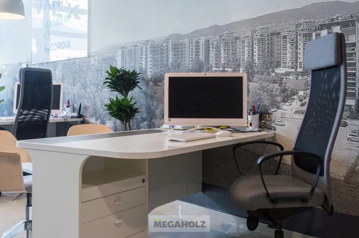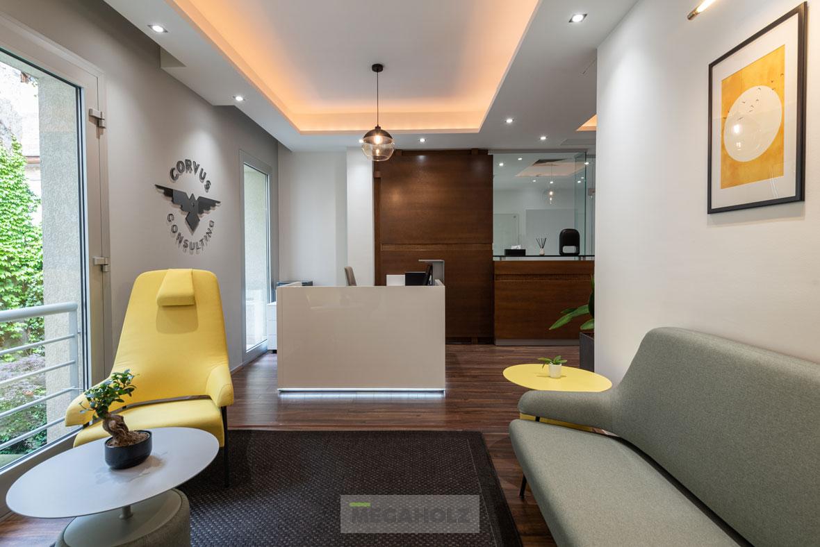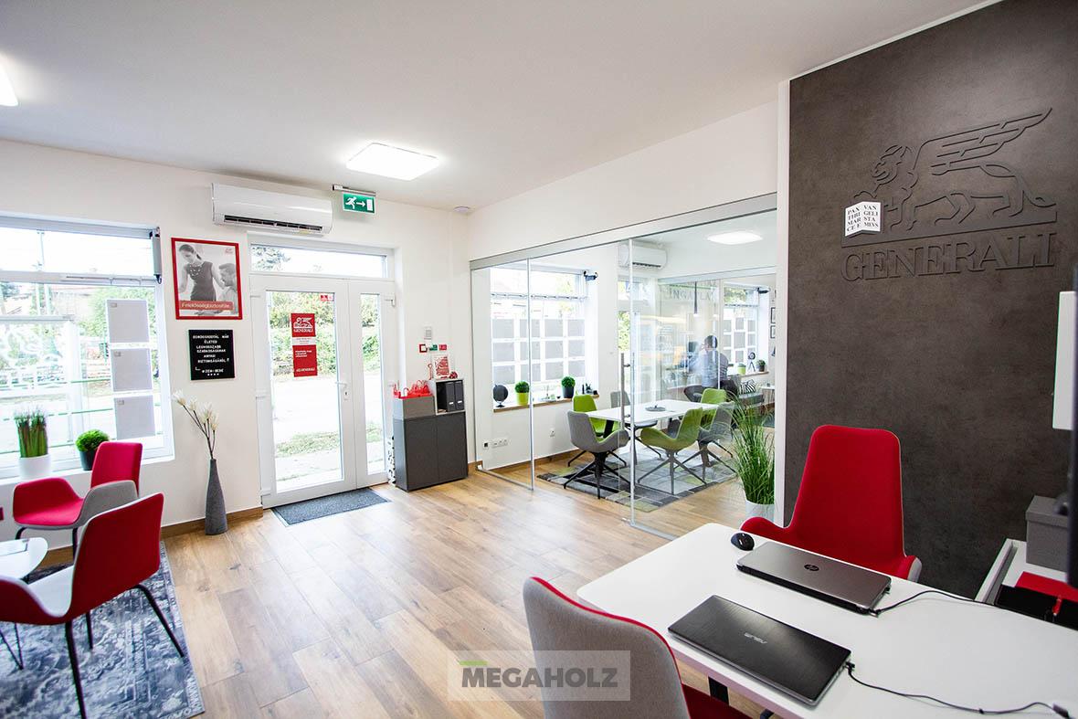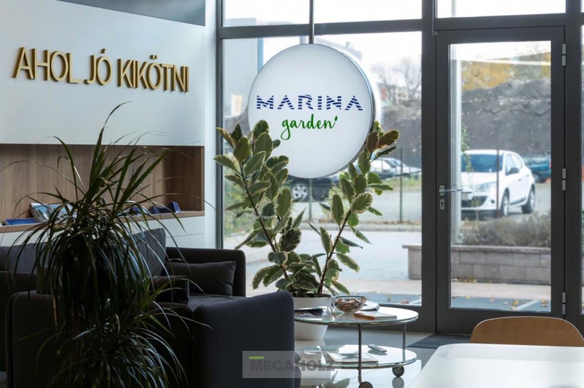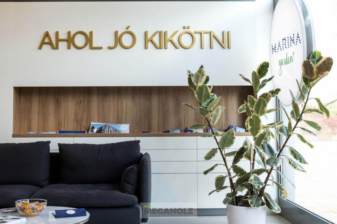 A Marina Garden iroda az egyik legnagyobb ingatlan értékesítő iroda Magyarországon. A design elemektől kezdve, a mobíliákon keresztül, az épített bútorokon át a Megaholz biztosította a berendezést.
