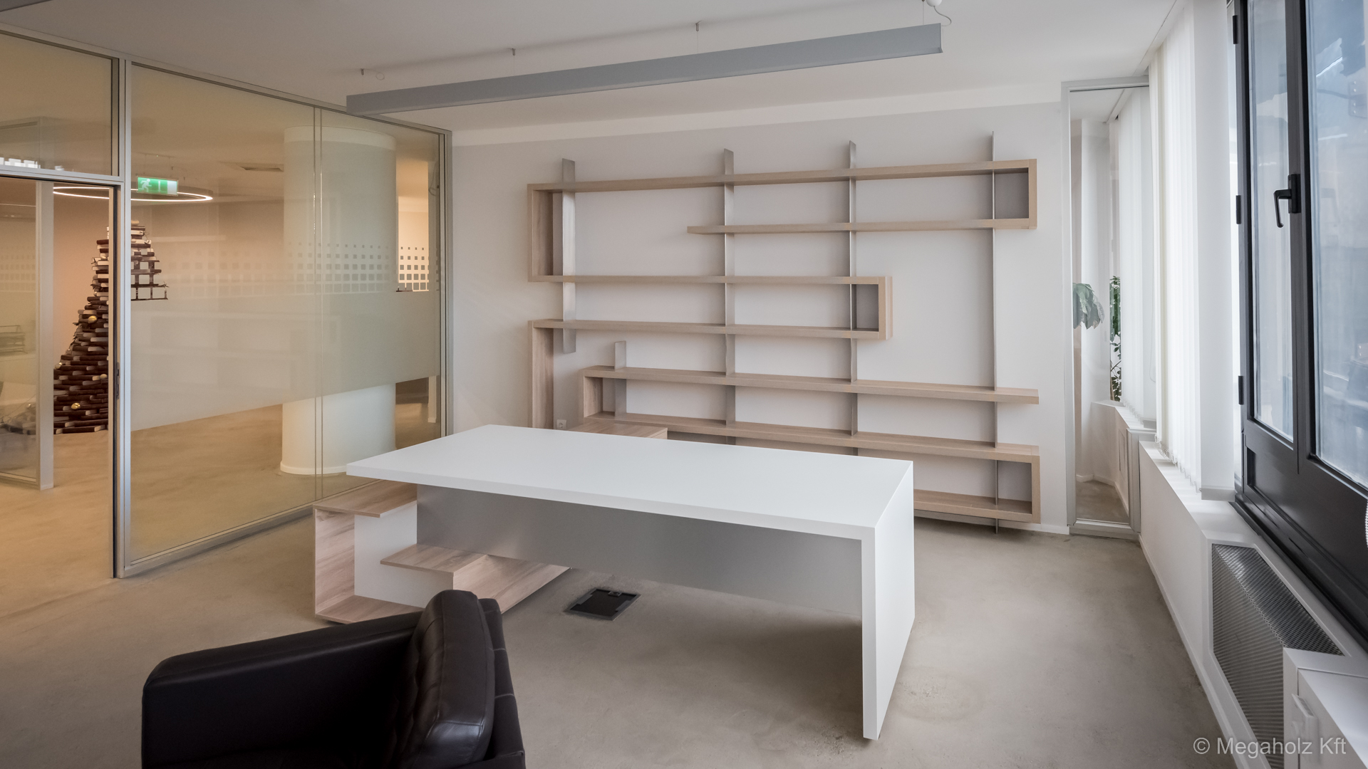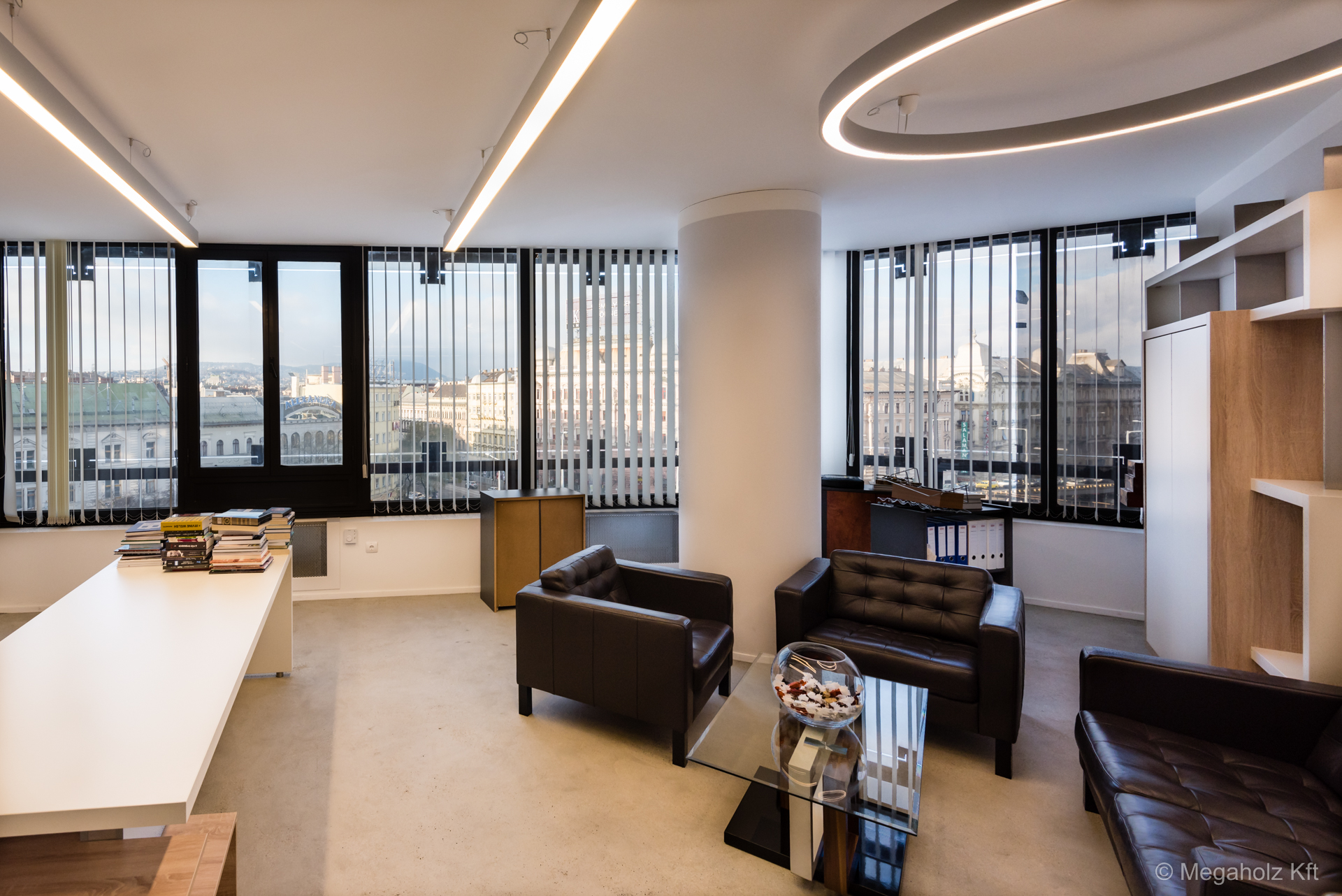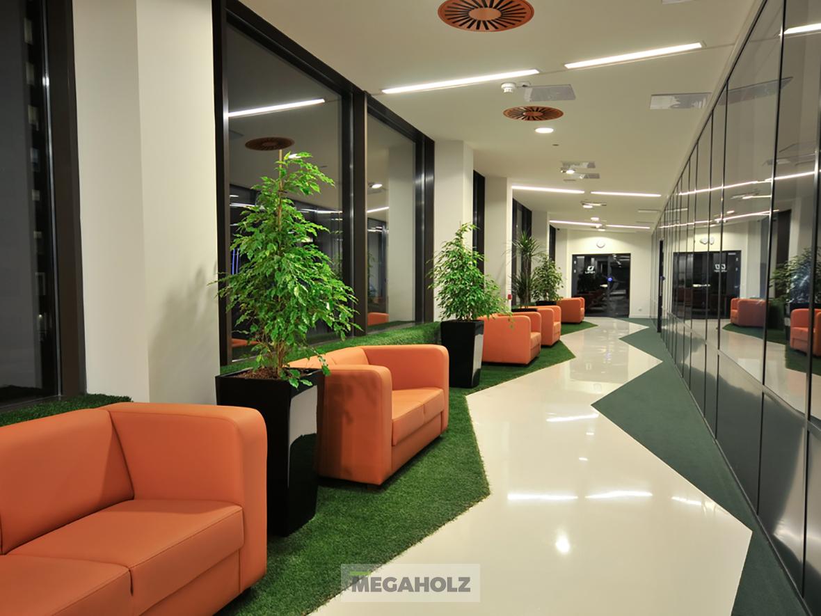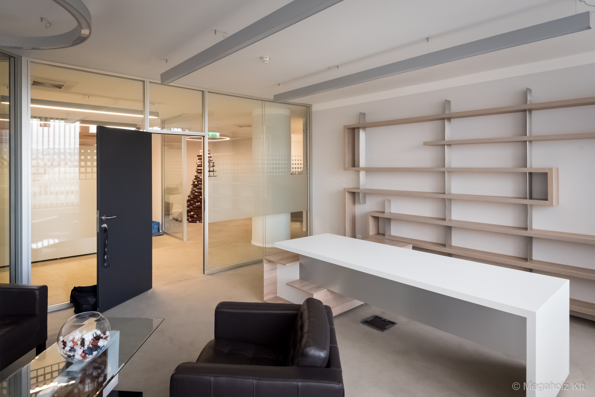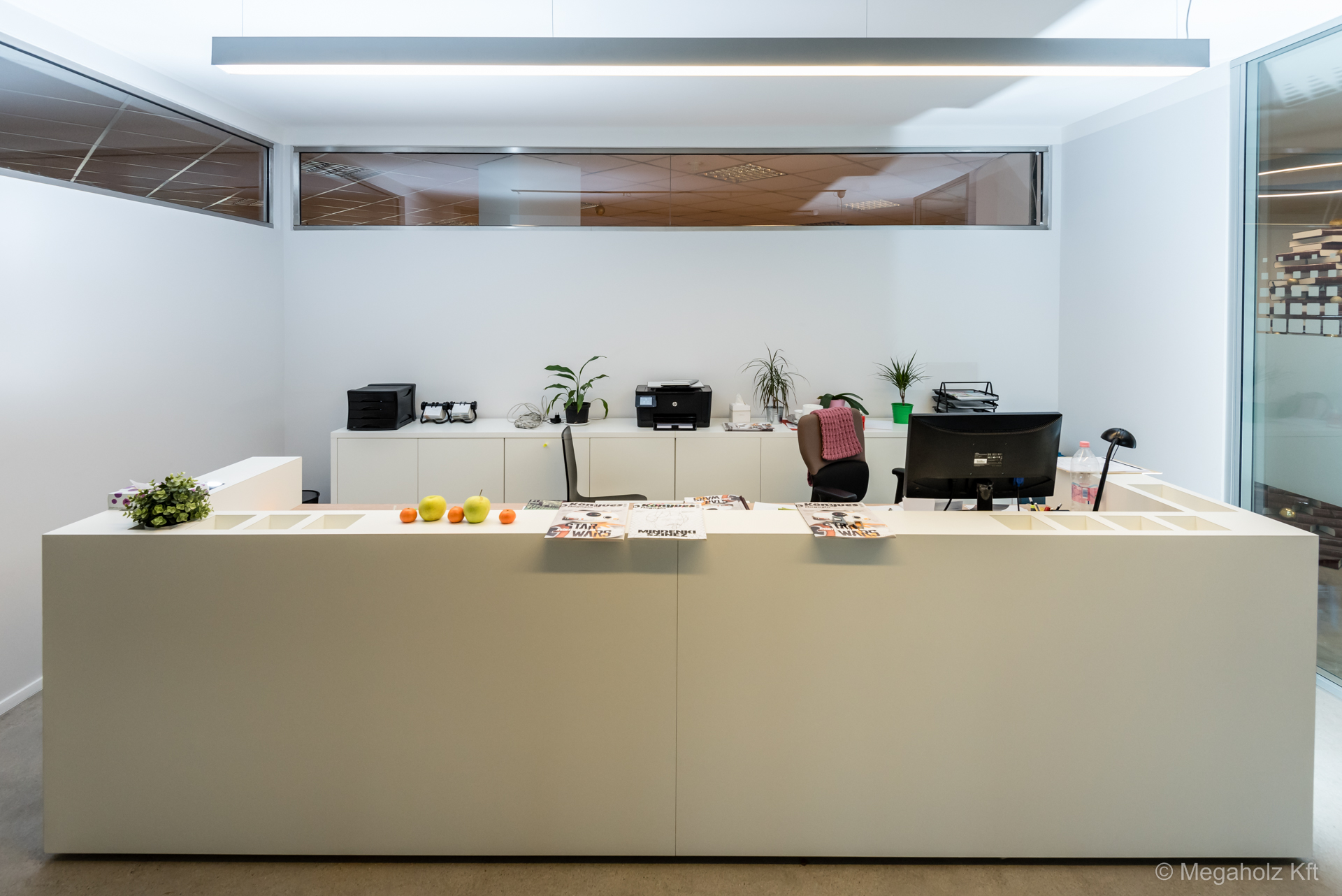 A Marina Garden iroda az egyik legnagyobb ingatlan értékesítő iroda Magyarországon. A design elemektől kezdve, a mobíliákon keresztül, az épített bútorokon át a Megaholz biztosította a berendezést.