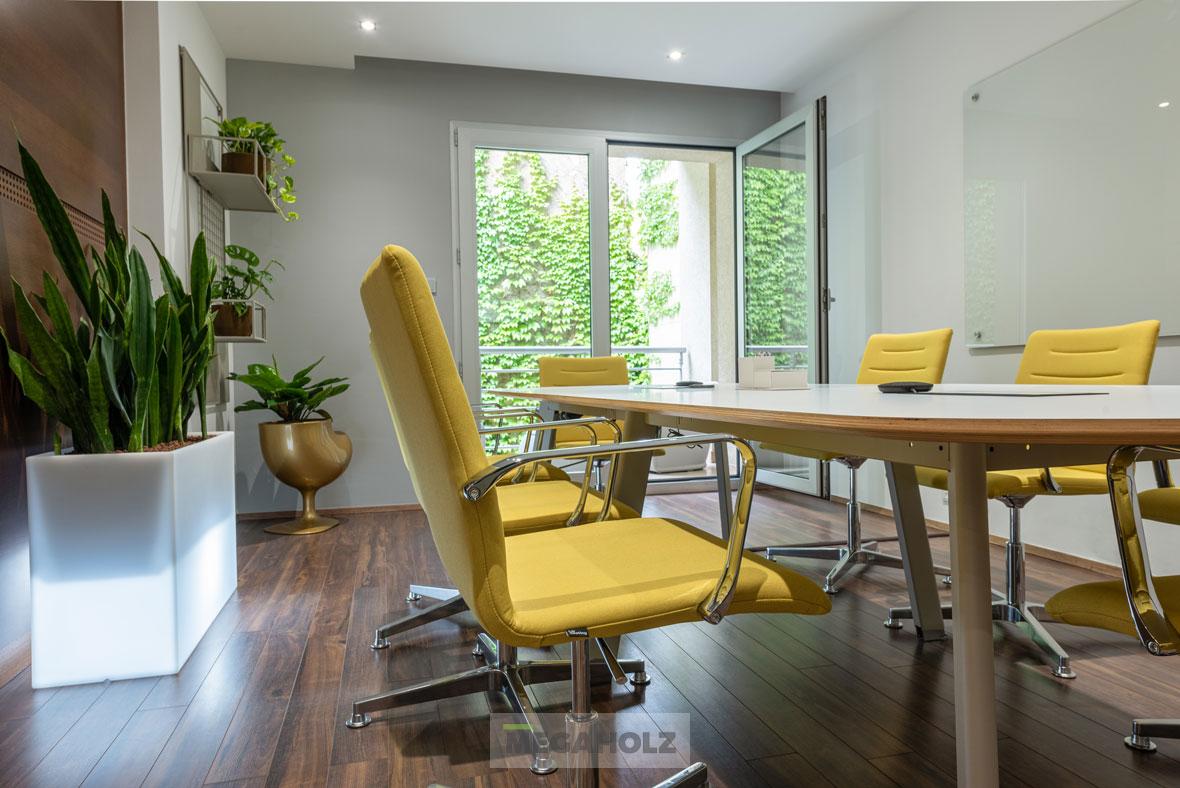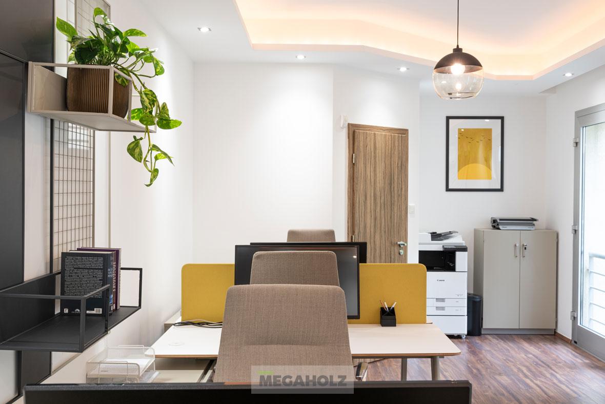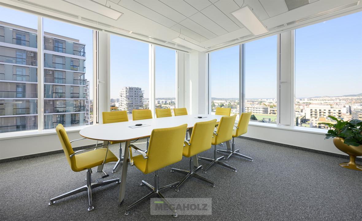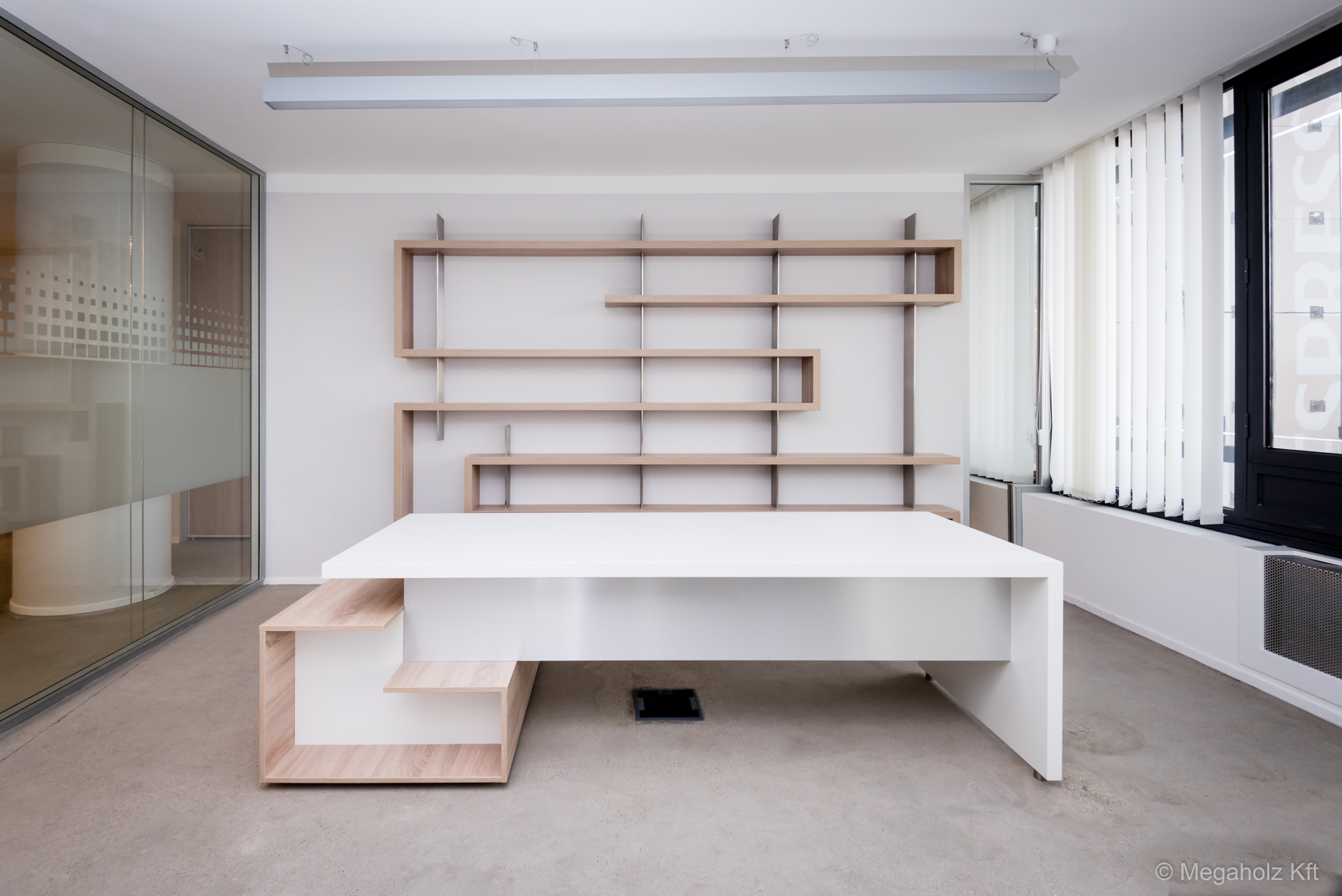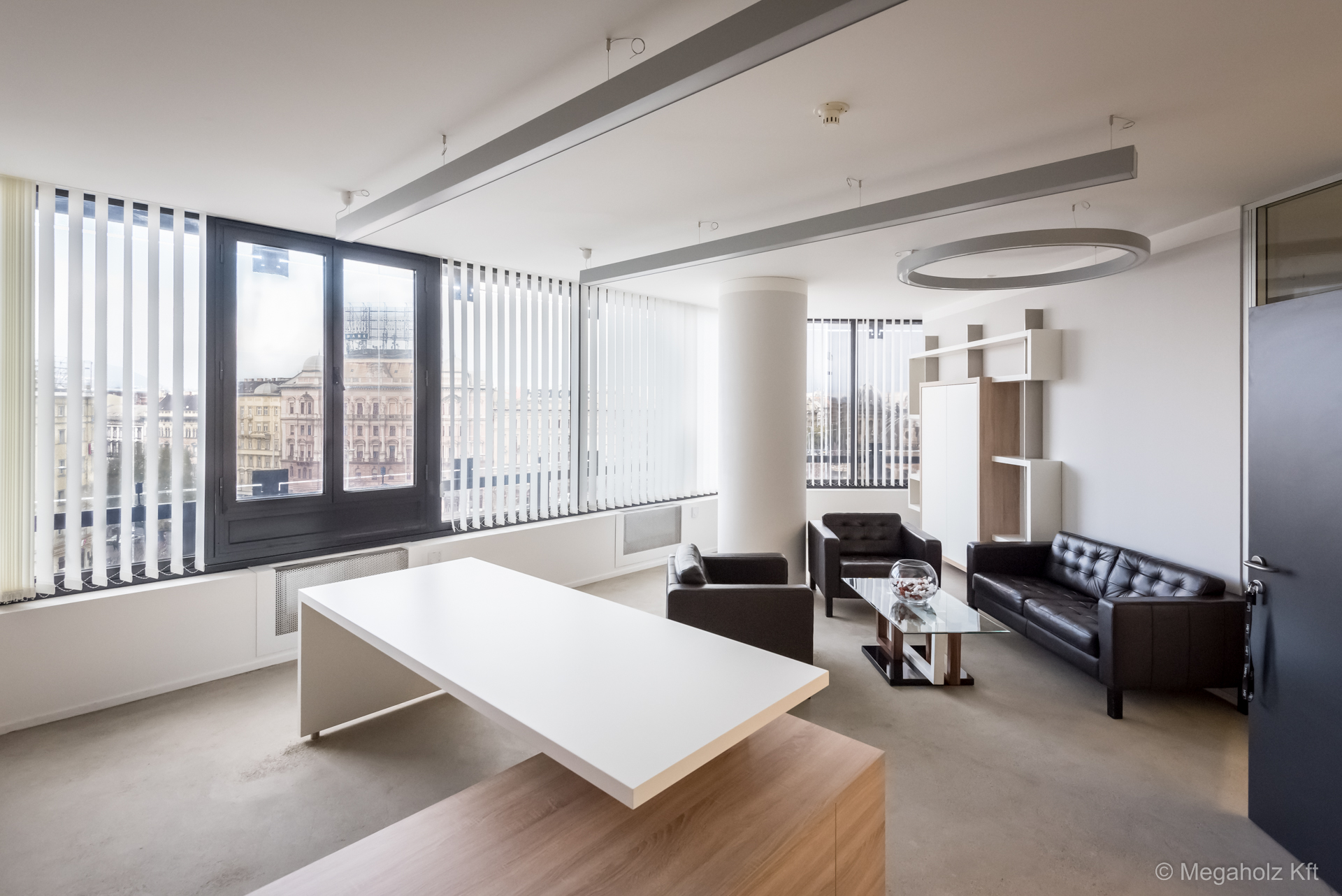 A Marina Garden iroda az egyik legnagyobb ingatlan értékesítő iroda Magyarországon. A design elemektől kezdve, a mobíliákon keresztül, az épített bútorokon át a Megaholz biztosította a berendezést.