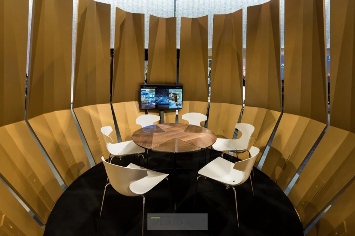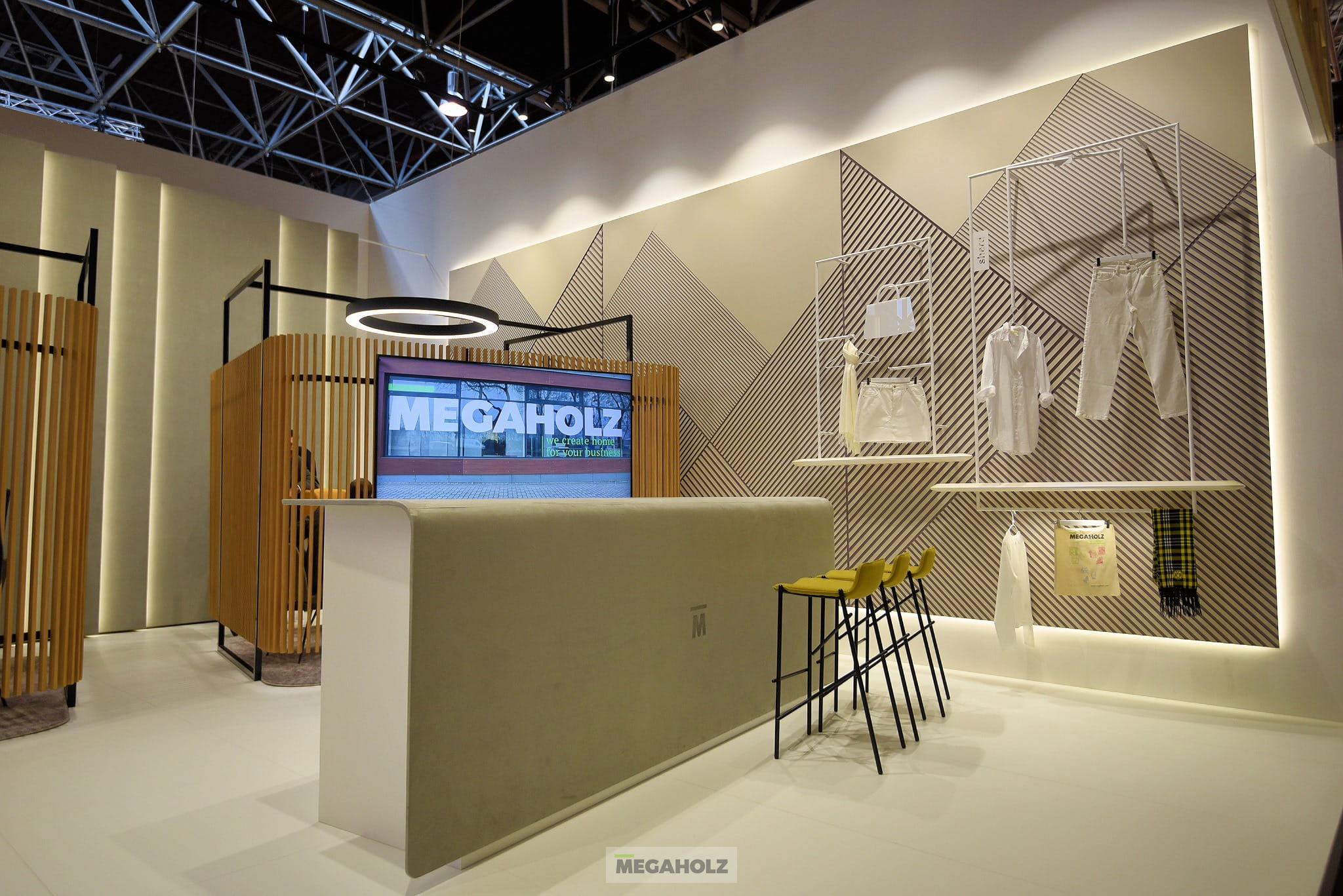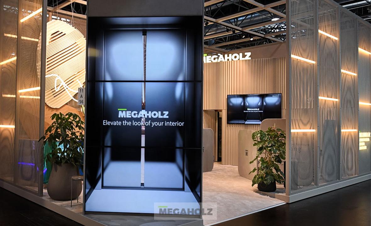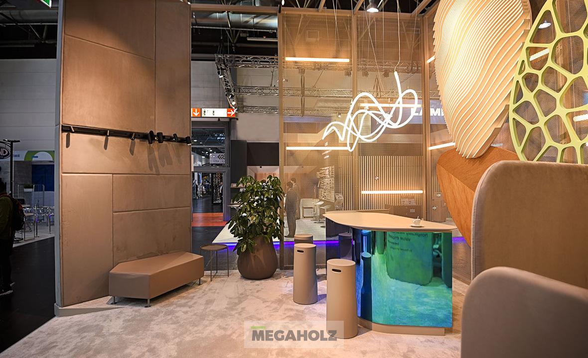 2023-ban Düsseldorfba látogatott a Megaholz, ott lehettünk a szakma legnagyobb nemzetközi nevei mellett! A 2023-as standunk designja az M78studio munkáját dicséri. A tervezőt, Molnár Balázst kérdeztük a koncepcióról: „ A buborék formájú egyedi fali elemek egy-egy gyártástechnológiai eljárást prezentálnak a neutrális letisztult környezetben lebegő hatást keltve, minden oldalról más arcukat mutatva.”