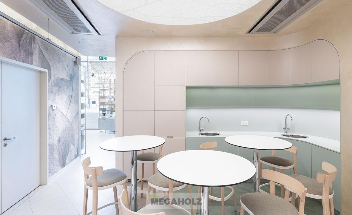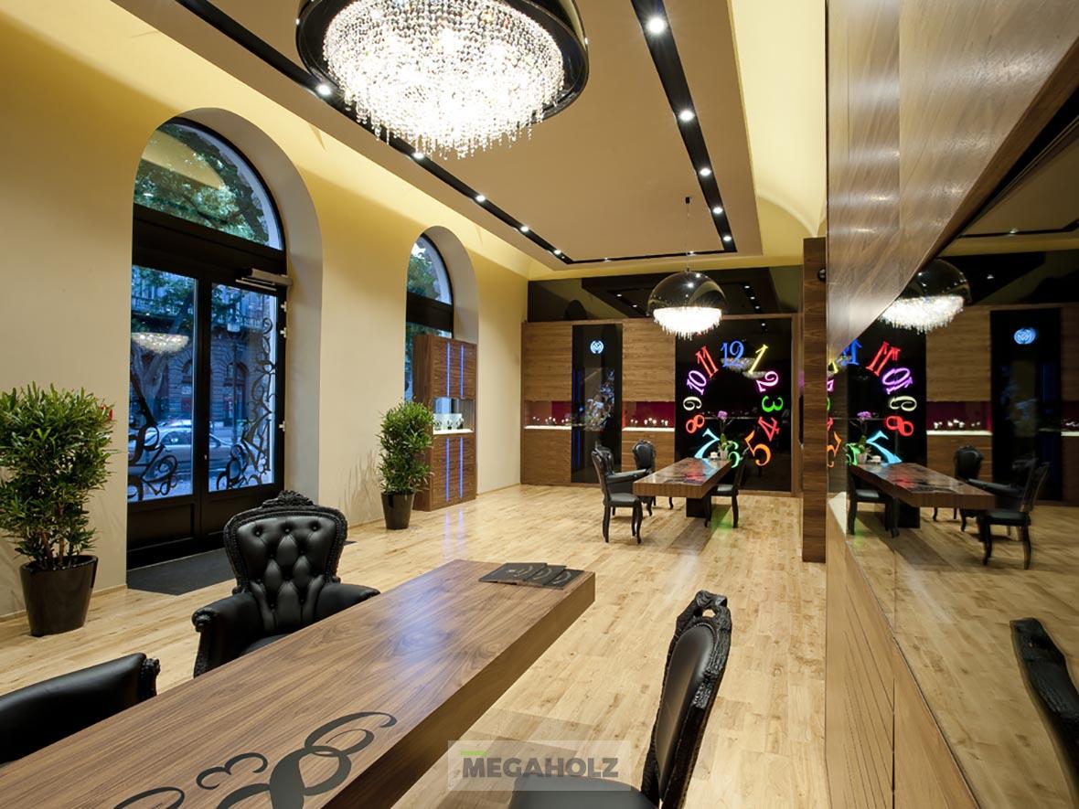A márka új bemutatóterme és oktatóközpontja Budapest egyik kiemelt pontján, a Green Court Office épületében kapott helyet, ahol közel 300 m2-en tágas, világos, gyönyörű környezetben várják a szakképzett munkatársak az érdeklődőket. A Megaholz csapata biztosította a bemutatóterem különleges, exkluzív, egyedi bútorait.