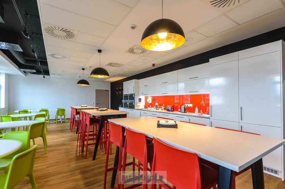 A Berlin-Chemie gazdag hagyományokkal bíró innovatív, nemzetközileg működő gyógyszergyártó új budapesti telephelyének kialakításában vettünk részt, ahova a dolgozói, közösségi terek és az étkező mobil bútorait szállítottuk.