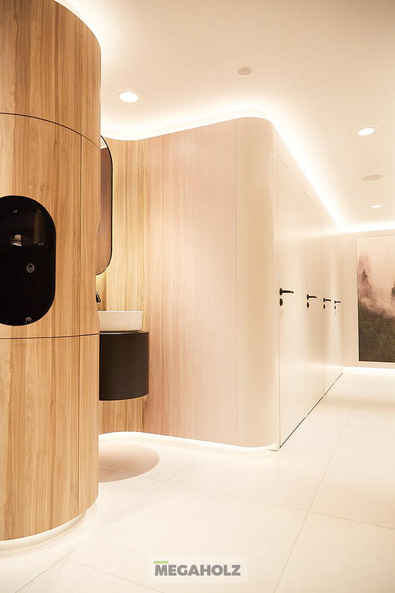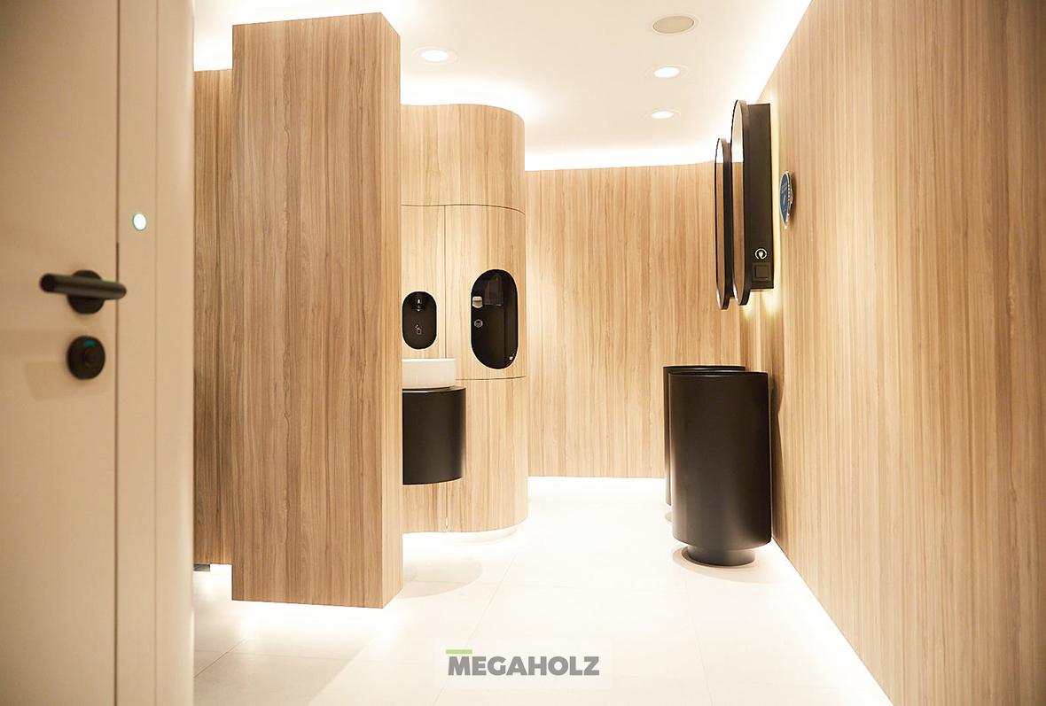 A One Hundred mellékhelyiségek forradalmasítják az alapjait a nyilvános mosdóknak a különleges dizájnjukkal és fejlettségükkel. Megaholz legyártotta és installálta a bútorzatát ennek a projektnek.