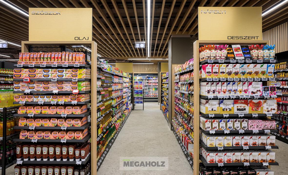 Újabb Príma nyitotta meg a kapuit a közelmúltban, ahol ismét egyedileg gyártott üzletberendezési megoldásainkkal járultunk hozzá a színvonalas megjelenéshez. A falburkolaton, optikai álmennyezeteken, a kasszapulton, design feliratokon és polcrendszereken kívül az üzleti világítást is a Megaholz biztosította.