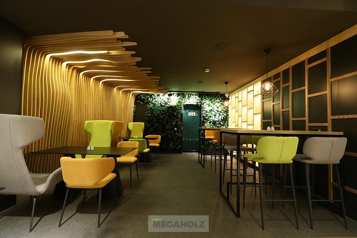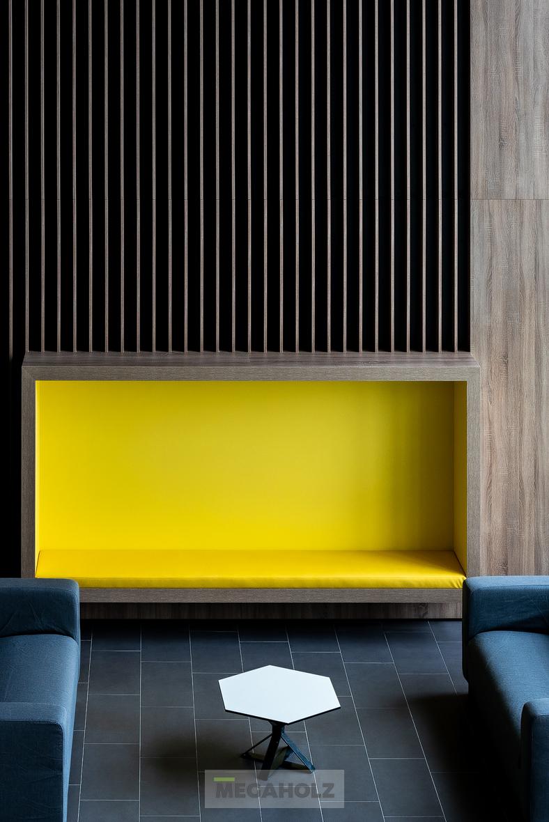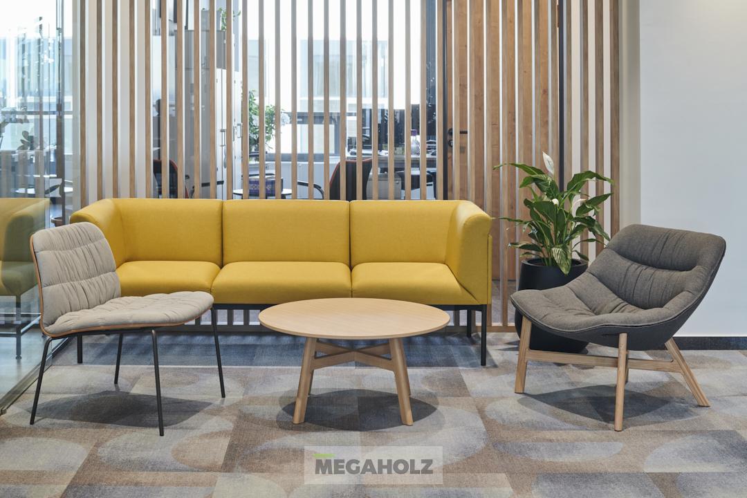 A MOL Campus épületére impozáns külseje mellett kiemelt figyelmet fordítottak a belső térre is. A Megaholz szállította a közösségi terek és irodák pihenő szigeteit és kiegészítőit. A változatos hangulatú zónák lehetővé teszik a dolgozók számára a kikapcsolódást és a motiválást is egyaránt.