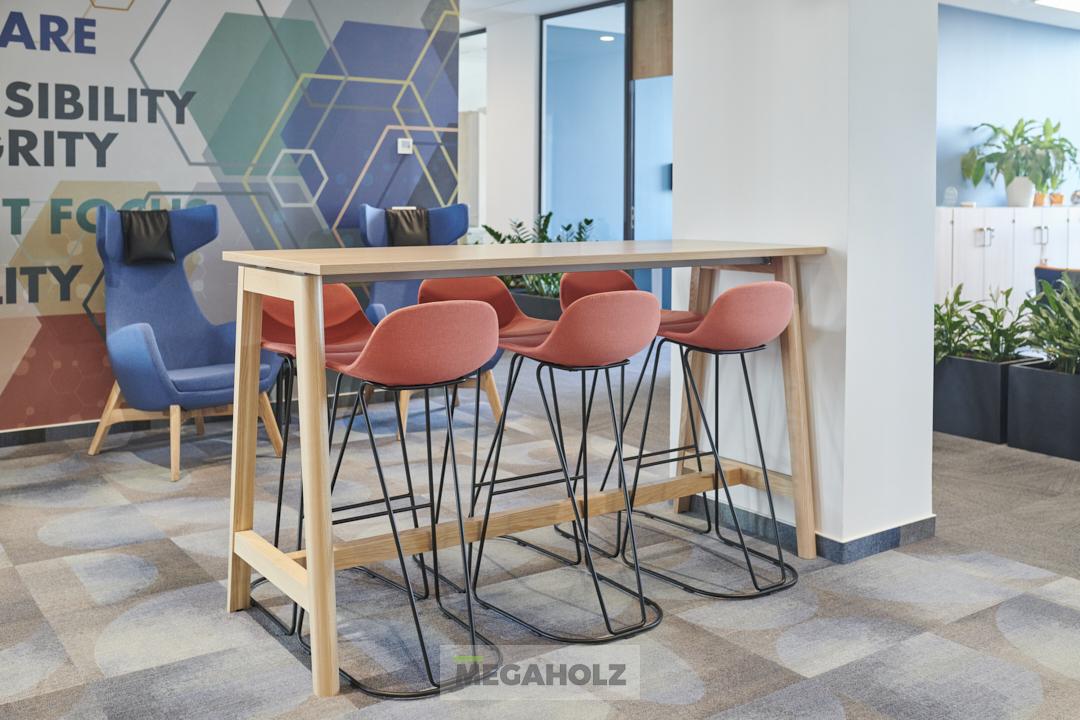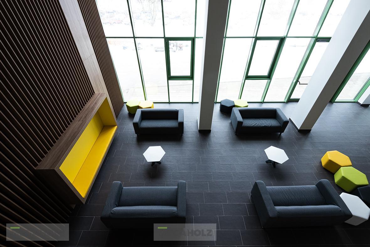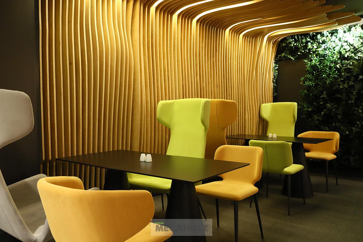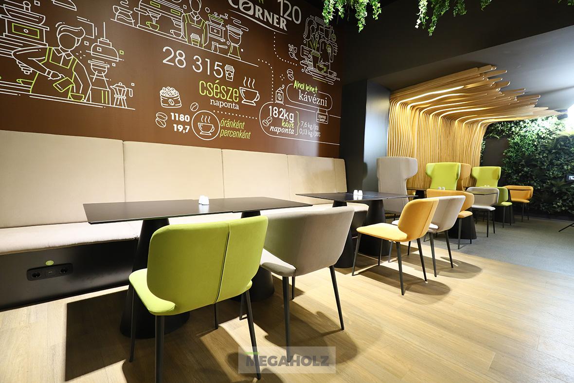A MOL Campus épületére impozáns külseje mellett kiemelt figyelmet fordítottak a belső térre is. A Megaholz szállította a közösségi terek és irodák pihenő szigeteit és kiegészítőit. A változatos hangulatú zónák lehetővé teszik a dolgozók számára a kikapcsolódást és a motiválást is egyaránt.