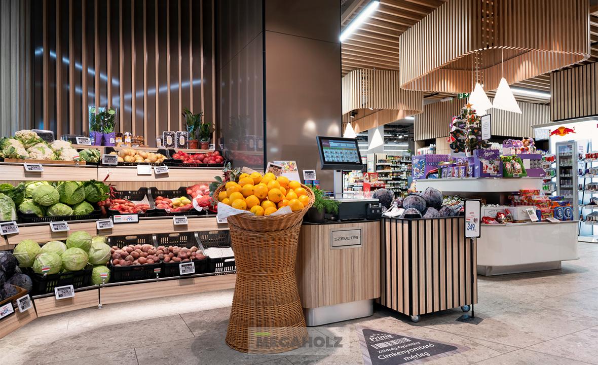 Nemrégiben egy újabb Príma üzlet nyitotta meg kapuit Budapesten, ahol egyedi üzletberendezési megoldásainkkal járultunk hozzá az igényes megjelenéséhez. A felújítás hat hónapig tartott, ez idő alatt a Megaholz nemcsak a polcrendszereket, hanem a pénztárhelyeket, valamint a fal- és mennyezatburkolatot is szállította.