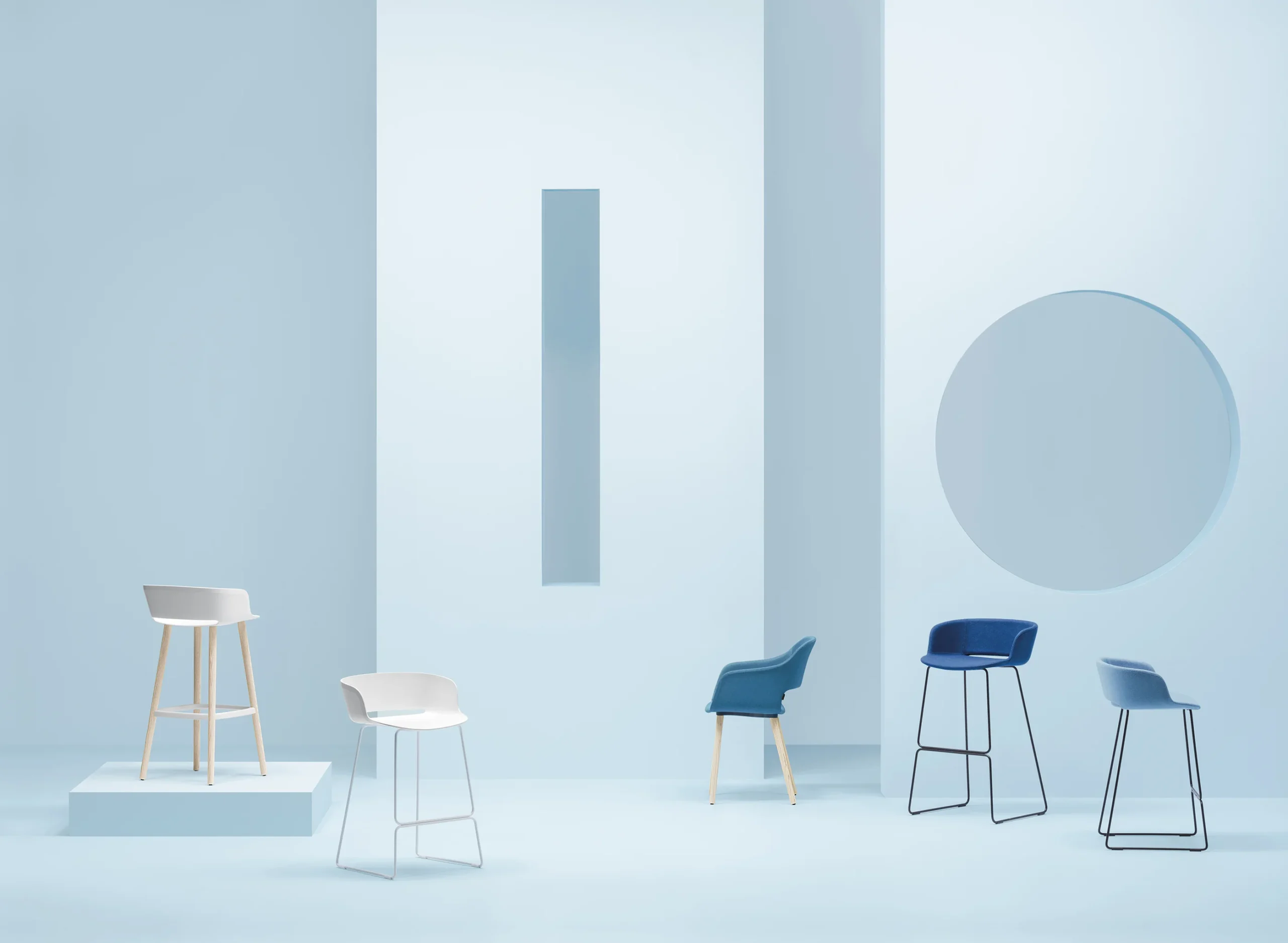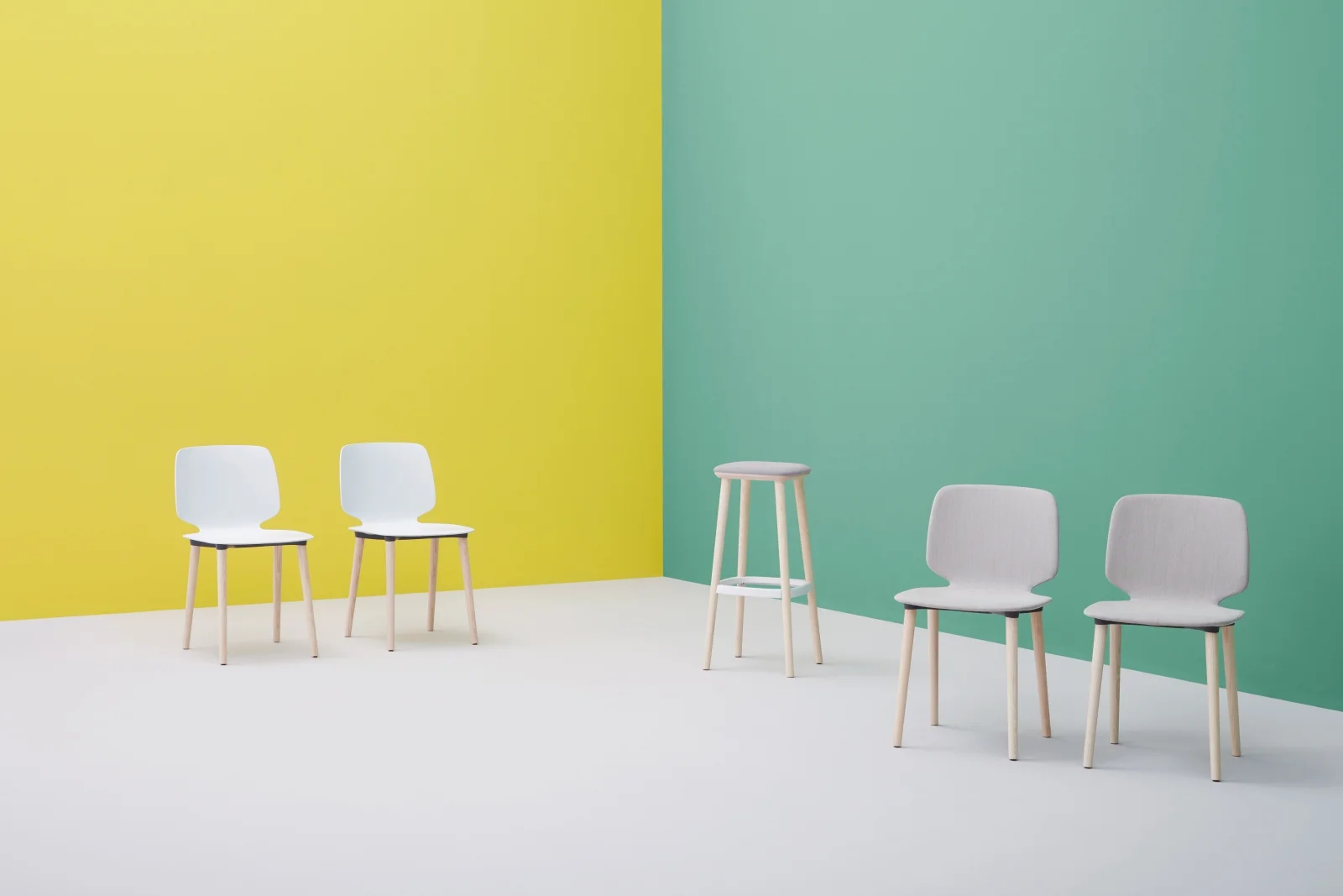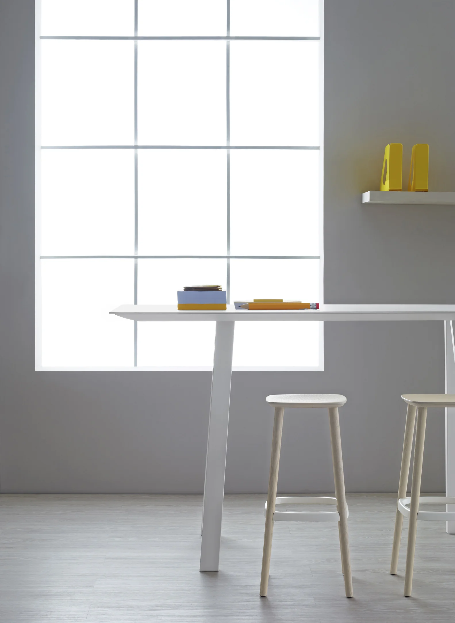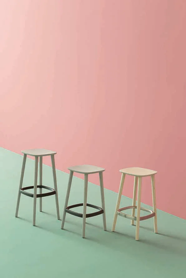 Ash wood barstool with an extreme lightweight look where the die-casted aluminium footrest is perfectly jointed to the legs. Height 750mm. Brand: Pedrali. Designed by: Odo Fioravanti.